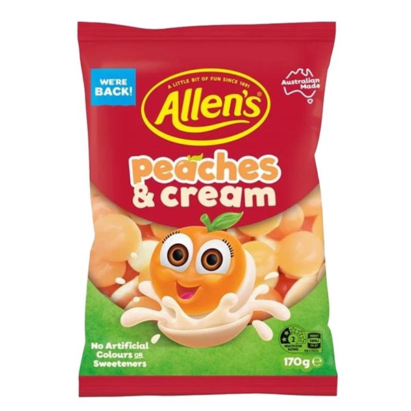 ALLEN'S PEACHES & CREAM PEG BAG 170G X 12 PACK