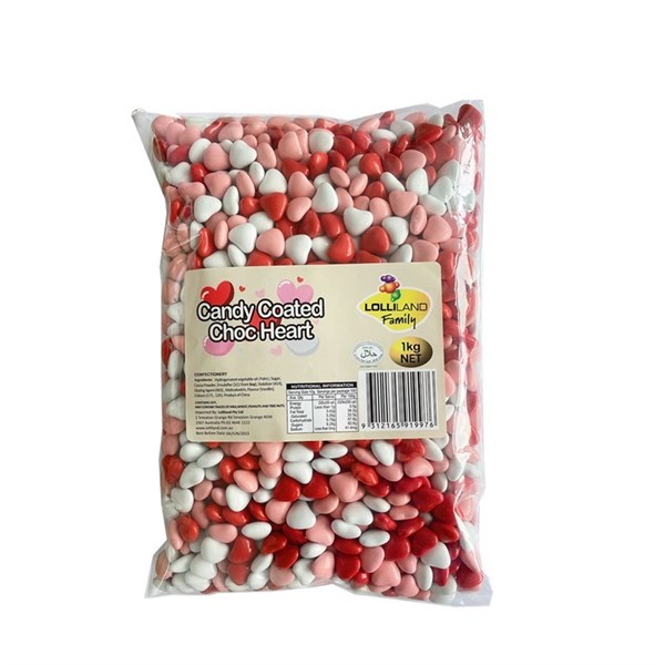 CANDY COATED CHOC HEART RED 1KG