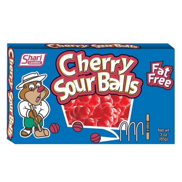 CHERRY SOUR BALLS THEATRE BOX 85G X 12 PACK