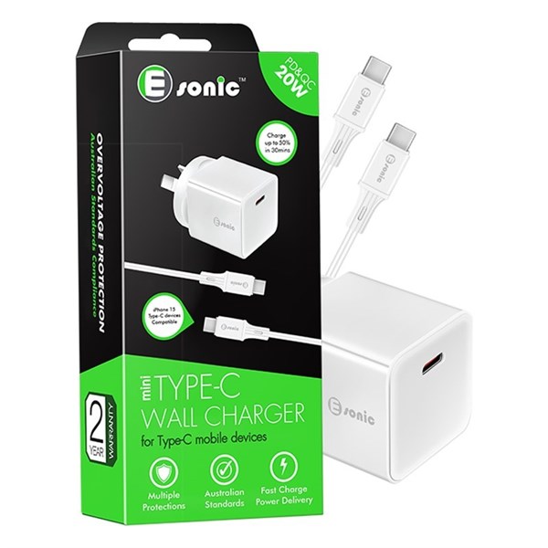 E-SONIC WALL CHARGER + CABLE TYPE C MOBILE DEVICES