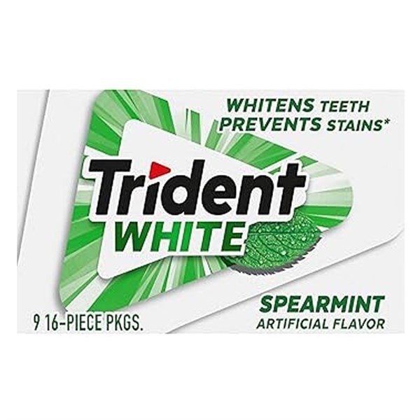 TRIDENT WHITE SPEARMINT GUM 16PC X 9 PACK